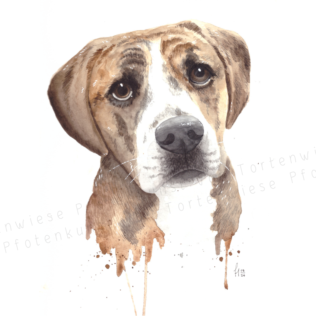 Hier siehst du eine Auswahl meiner gescannten Aquarelle – eine bunte Mischung aus Portraits und Ganzkörperdarstellungen, mit unterschiedlichen Hintergründen und Detailgraden. Jedes Bild ist individuell und spiegelt die Persönlichkeit des jeweiligen Tieres wider. Diese Galerie zeigt nur einen Teil meiner Werke, gibt dir aber einen Einblick in die Vielfalt meiner Kunst. Gerne passe ich Stil und Detailgrad an deine Wünsche an, um dein Tier perfekt in Szene zu setzen.