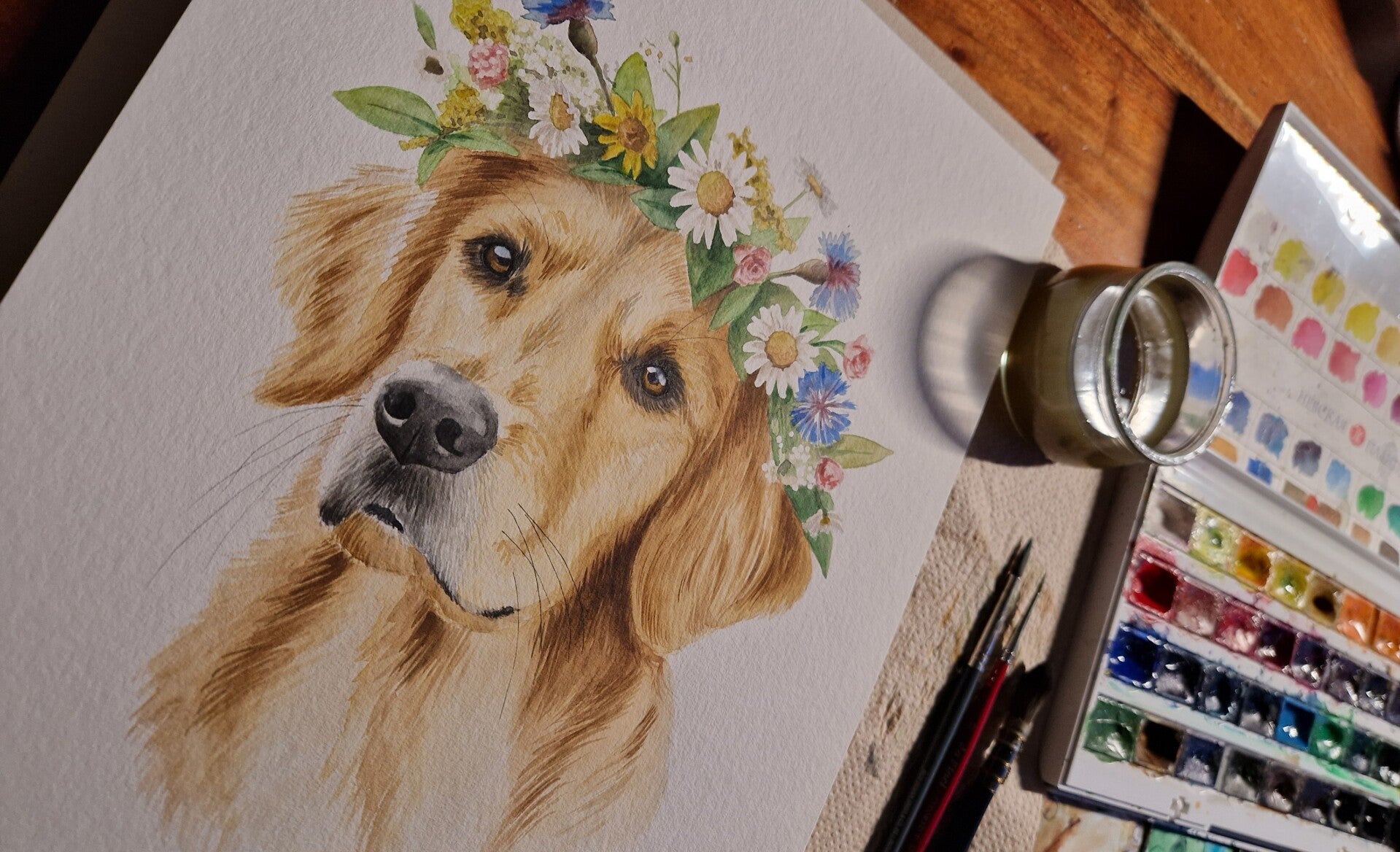 Jedes meiner Aquarell-Portraits wird mit hochwertigen Schmincke Horadam Farben auf edlem Hahnemühle Papier gemalt. Durch die feinen Farbverläufe und sanften Details entsteht ein ausdrucksstarkes und lebendiges Portrait, das die Persönlichkeit deines Lieblings perfekt einfängt.